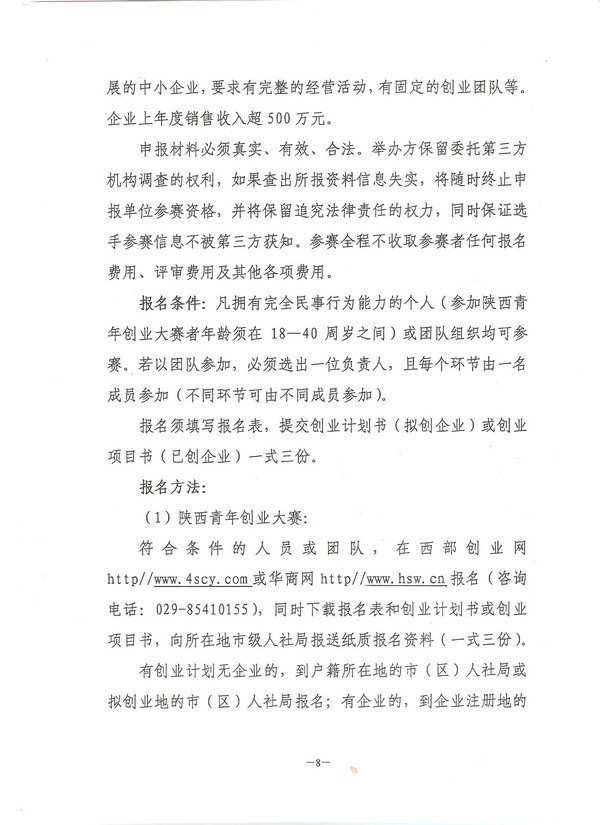 关于举办陕西省首届全民创业大赛的通知